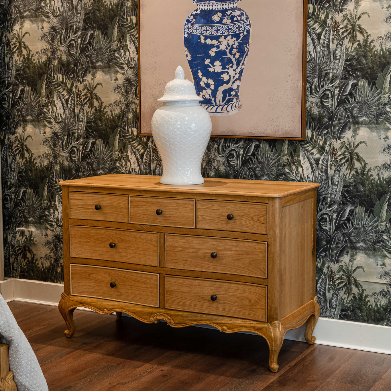 Elevate your bedroom with the Bordeaux 7 Drawer Chest – where vintage charm meets practical storage, creating a serene and stylish retreat.