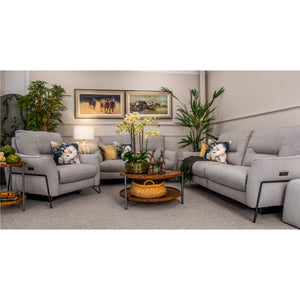 Introducing the Botticelli Silver Armchair Power Recliner. Luxurious and stylish, it's a must-have from the Domocile collection. This armchair offers ultimate comfort with a power recliner feature. Available in leather or fabric options, it features an industrial leg design, slender arm, and high back for support. With a USB port for device charging, it's the perfect choice for relaxation in any room.