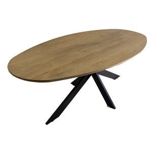 - Sleek Metal X-Leg Design: The unique metal x-leg with nut and bolt detailing adds a contemporary edge, creating a striking contrast against the warm oak surface.