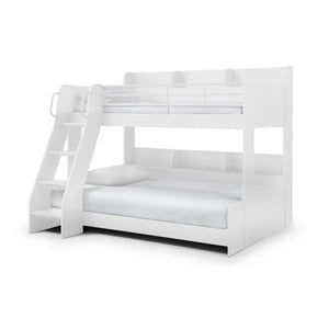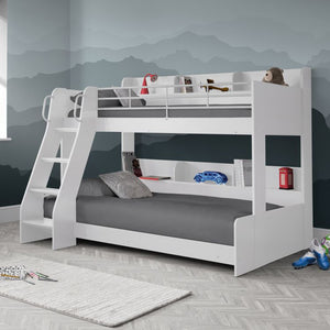 In a choice of white or light grey finish, the Domino Triple Sleeper is the perfect bed for your little ones. With the lower bunk accommodating two children, and the top bunk an additional one, Domino maximises floor space by combining three sleeping solutions using the space of one. Multifaceted and extremely functional in design, this bed can be adapted to suit your child’s needs. The classic design and finish of this bed means it is not limited to children’s bedrooms but is ideal for guestrooms too.