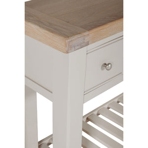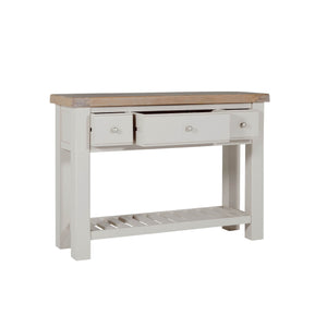 Elevate your space with the Doune Console Table. This stylish and functional piece features a sleek painted finish and a stylish oak veneer top. The three drawers and open shelving provide ample storage space for your belongings.