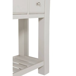 - Ample Storage: Drawers and open shelving for organized storage.