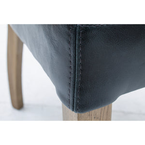 - Premium Materials: The chair is upholstered in luxurious Ink Blue bi-cast leather, providing an easy-to-clean surface that maintains its beauty over time. The solid oak legs ensure stability and long-lasting use.