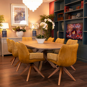 The Giro Oak Swivel Dining Chair in Ochre is the perfect blend of form and function, making it an ideal choice for any modern dining room.