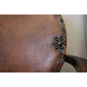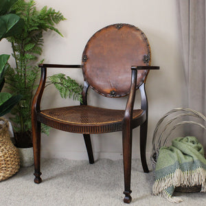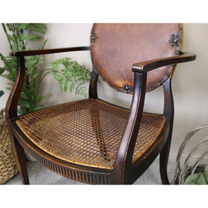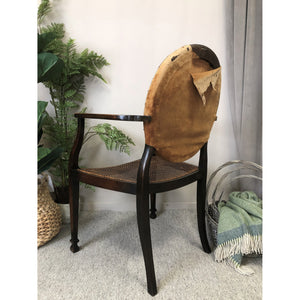 Once property of Cloniffe College Seminary Hepplewhite style mahogany oval leather back chair with bergere seat. Circa 1910.
