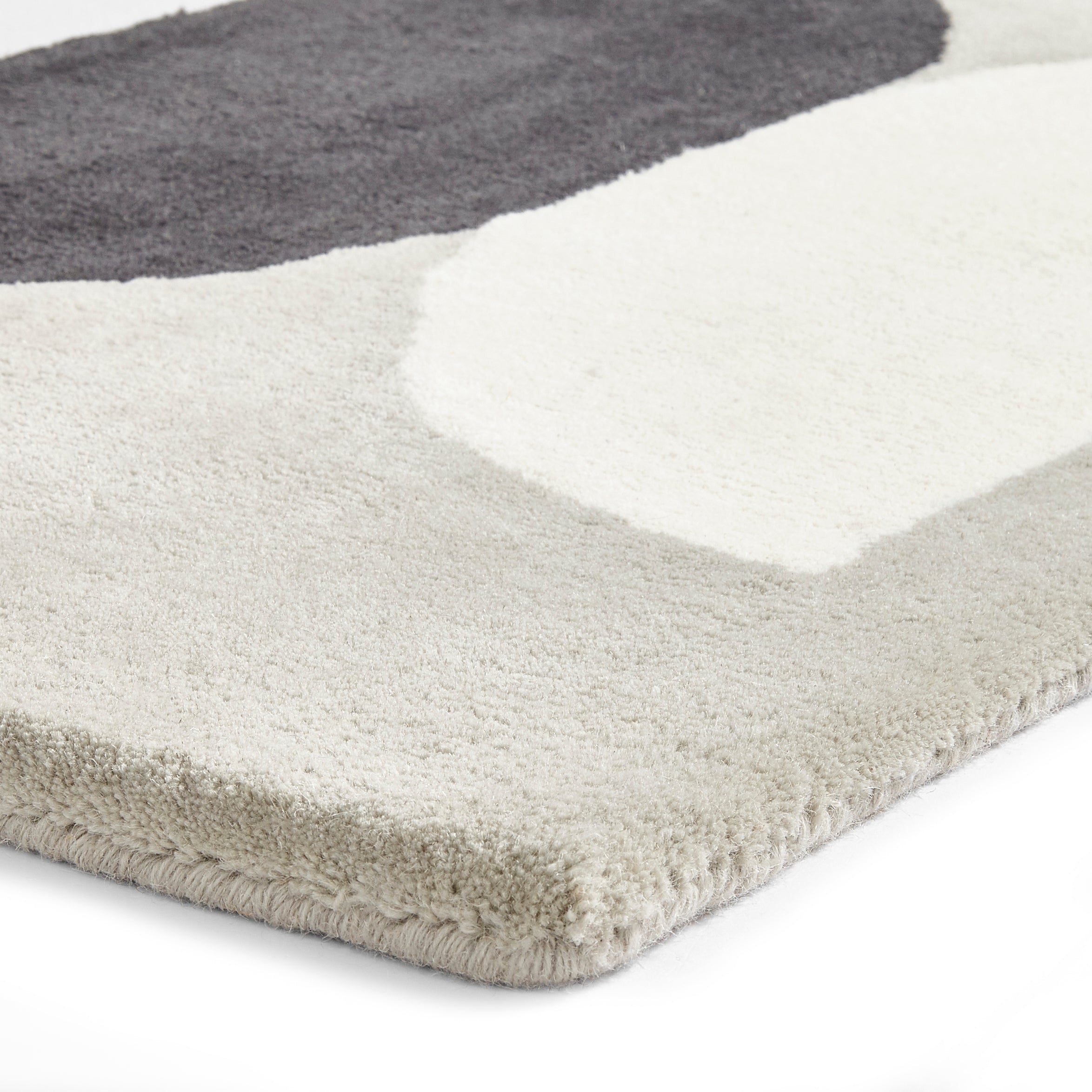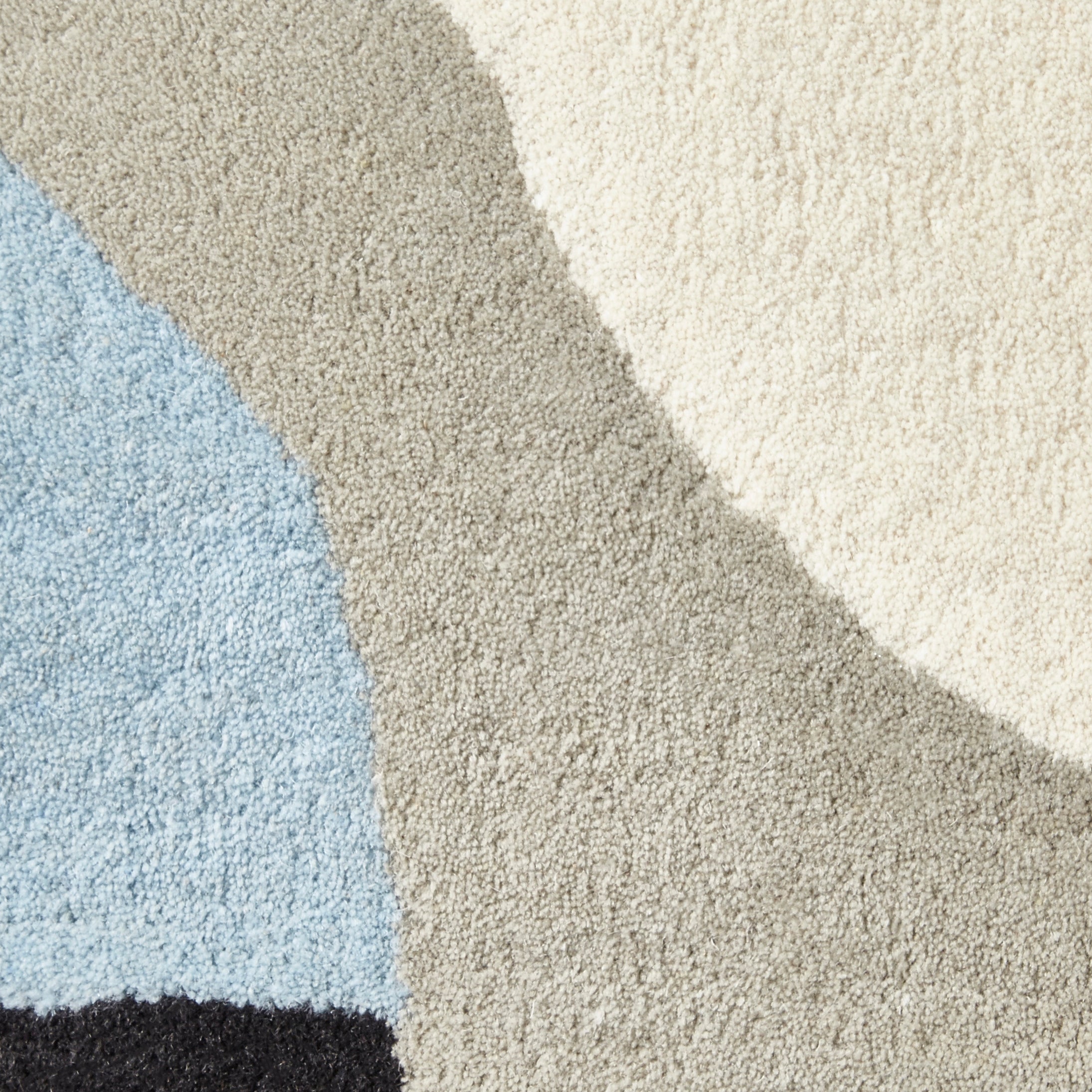 Elevate your space with the Inaluxe Composition Rug. This stunning, hand-tufted rug features a bold and abstract design with organic shapes in a harmonious blend of grey, black, white, and pastel hues. The luxurious blend of wool and viscose creates a soft and durable surface that is both stylish and practical.