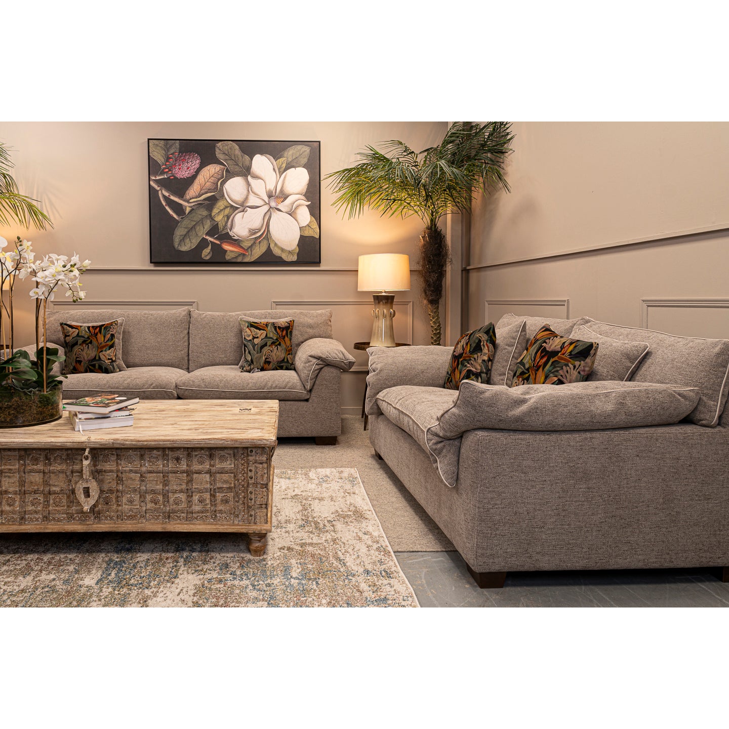 The Kiera 2 Seater Sofa is the perfect blend of comfort and contemporary style. Upholstered in a soft mushroom fabric, its versatile neutral tone makes it easy to style in both modern and classic interiors.