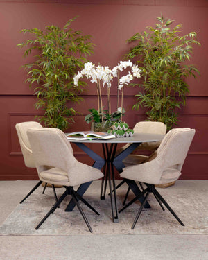 - Upholstered Fabric: The Lana Dining Chair is expertly upholstered in premium fabric, offering a soft and inviting feel that complements any dining setting.