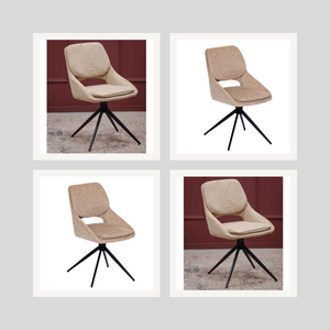Transform your dining area with the Lana Dining Chair Set of 4—a luxurious combination of comfort, style, and functionality. Upholstered in premium fabric with padded seats and backs, these chairs offer an inviting feel and exceptional support. Featuring a sleek swivel base, the Lana Dining Chair blends modern design with timeless elegance to complement any dining space.