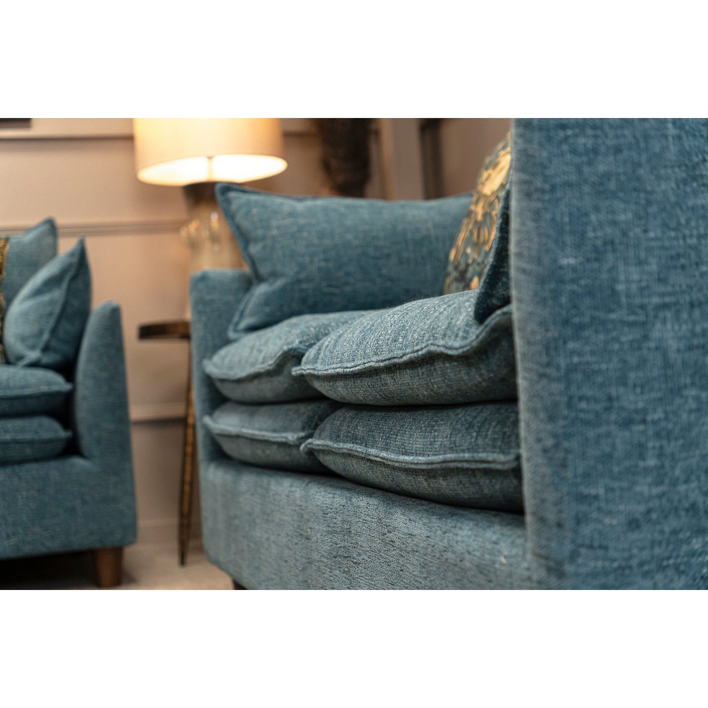 The Lara 2 Seater adds a touch of modern elegance with its rich deep turquoise fabric. Compact yet inviting, it features sleek lines and supportive cushions, making it perfect for smaller spaces or as a vibrant accent alongside larger seating.