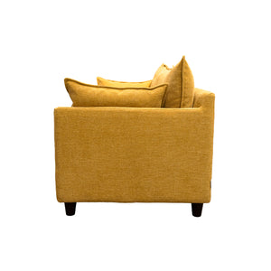The Lara 2 Seater brings a pop of colour and contemporary charm to your living space. Upholstered in a vibrant golden yellow fabric, it pairs sleek lines with compact proportions – perfect for modern homes. With its supportive cushions and cosy design, Lara offers both style and comfort in a size that suits smaller spaces or as a complement to larger seating.