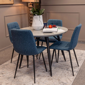 Lola Round Dining table and 4 x Blue Oslo Dining chairs - Bundle Deal