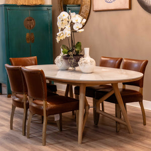Elevate your dining experience with the Margo Oval Dining Table. Crafted with a sleek, oval design and a durable sintered stone top, this table is both stylish and practical. The smooth, non-porous surface is easy to clean and maintain.
