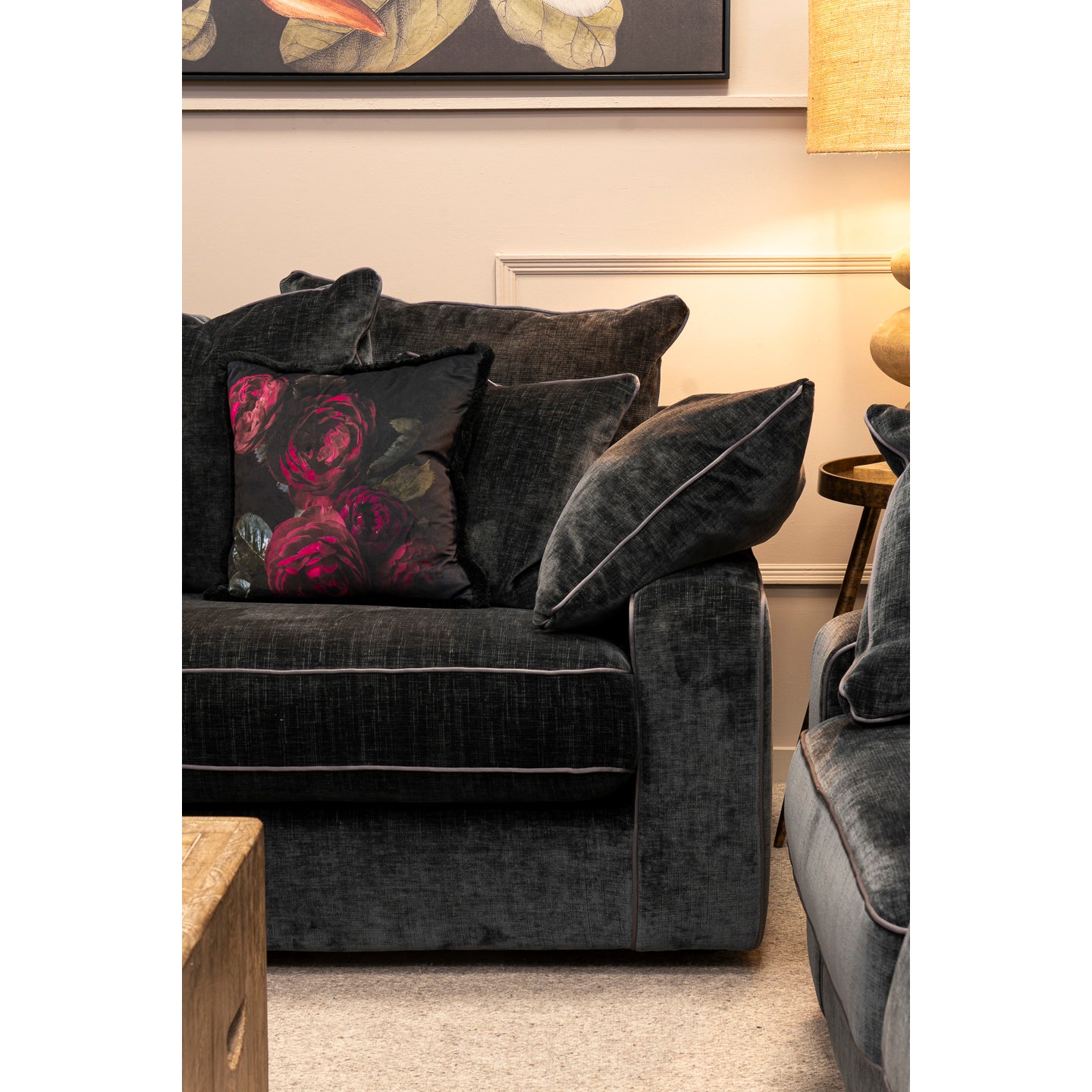 Introducing the Marilyn Small Sofa - Standard Back, a stunning piece that exudes glamour and sophistication. Available in Zelda Charcoal, this exquisite sofa features elegantly piped arms and cushions. With plush comfort and a sleek design, it offers the perfect balance. Crafted with high-quality materials, it transforms your living space into a luxurious oasis. Elevate your home with the Marilyn Small Sofa today and indulge in comfort and style.
