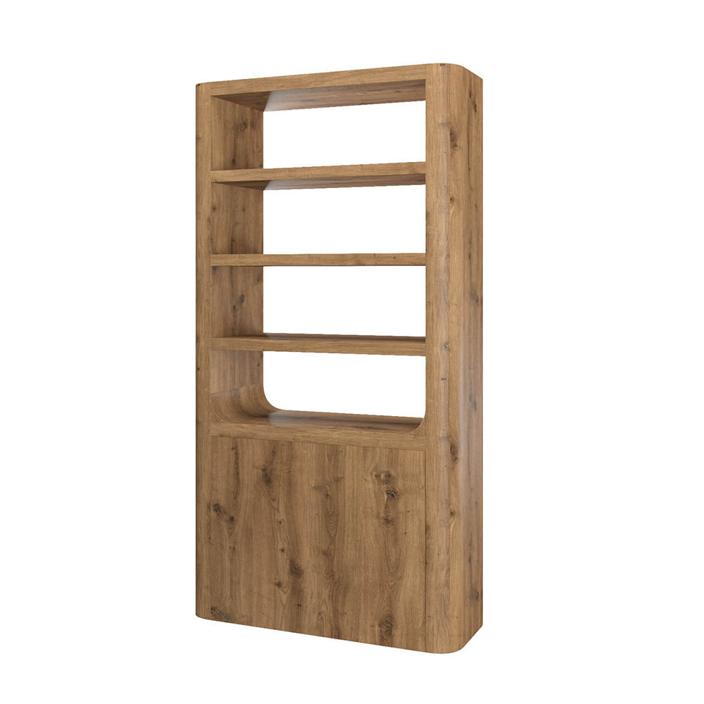 Massimo Tall Cabinet in Cashew combines bold rustic character with modern functionality. Featuring a distinctive cracked oak grain finish and solid wooden legs, it offers a sturdy presence with timeless appeal. The cabinet doors operate with a sleek push-to-open mechanism, while the fixed internal shelves provide stable and practical storage. A striking and functional addition to any living or dining space.