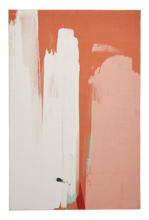 Elevate your interior with the Michelle Collins Terra and Ivory Rug. This stunning, digitally printed rug features a minimalist design with soft, organic shapes in warm peachy-pink and cream tones. The subtle texture and muted colors create a serene and sophisticated atmosphere.