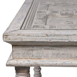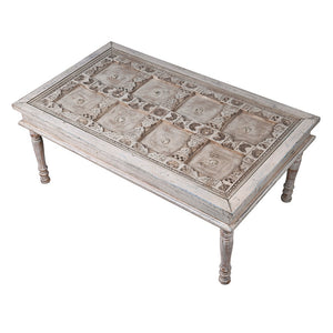 Step into a world of vintage elegance with the Miyana coffee table. Its antique style captivates with timeless beauty. The veneer and glass top form a masterpiece, combining warm wood grain with a sleek, reflective surface. Light dances, revealing intricate patterns and textures. The polished surface exudes awe and wonder. Meticulous craftsmanship ensures both beauty and functionality. Be it a quiet coffee or a grand gathering, the Miyana coffee table's charm and sophistication will mesmerize as the centerpiece of your home.