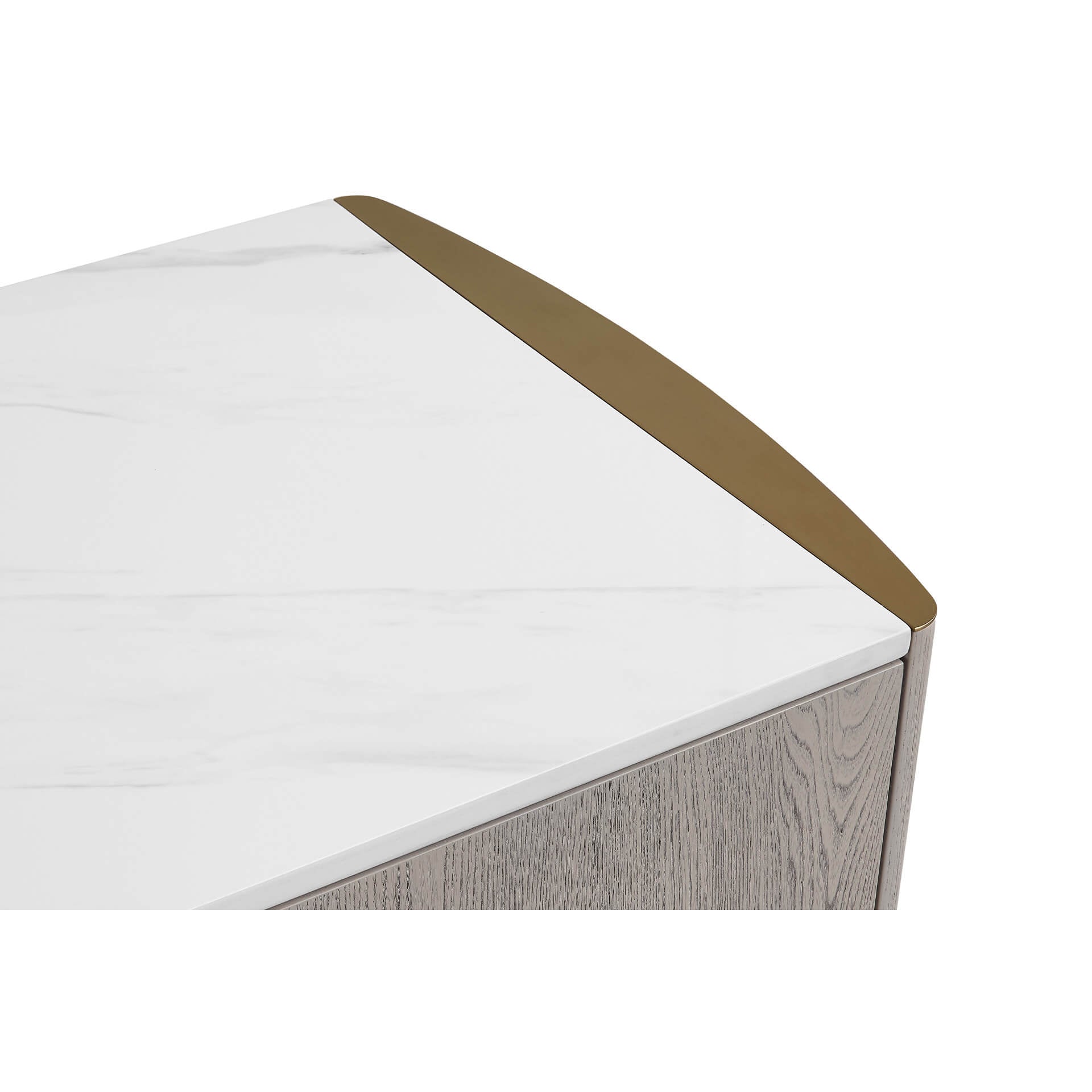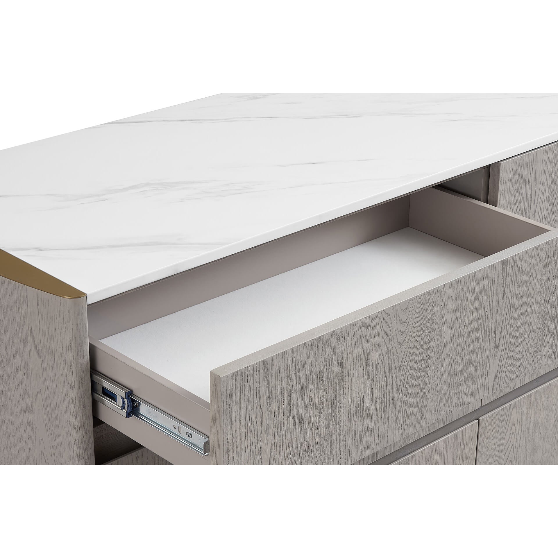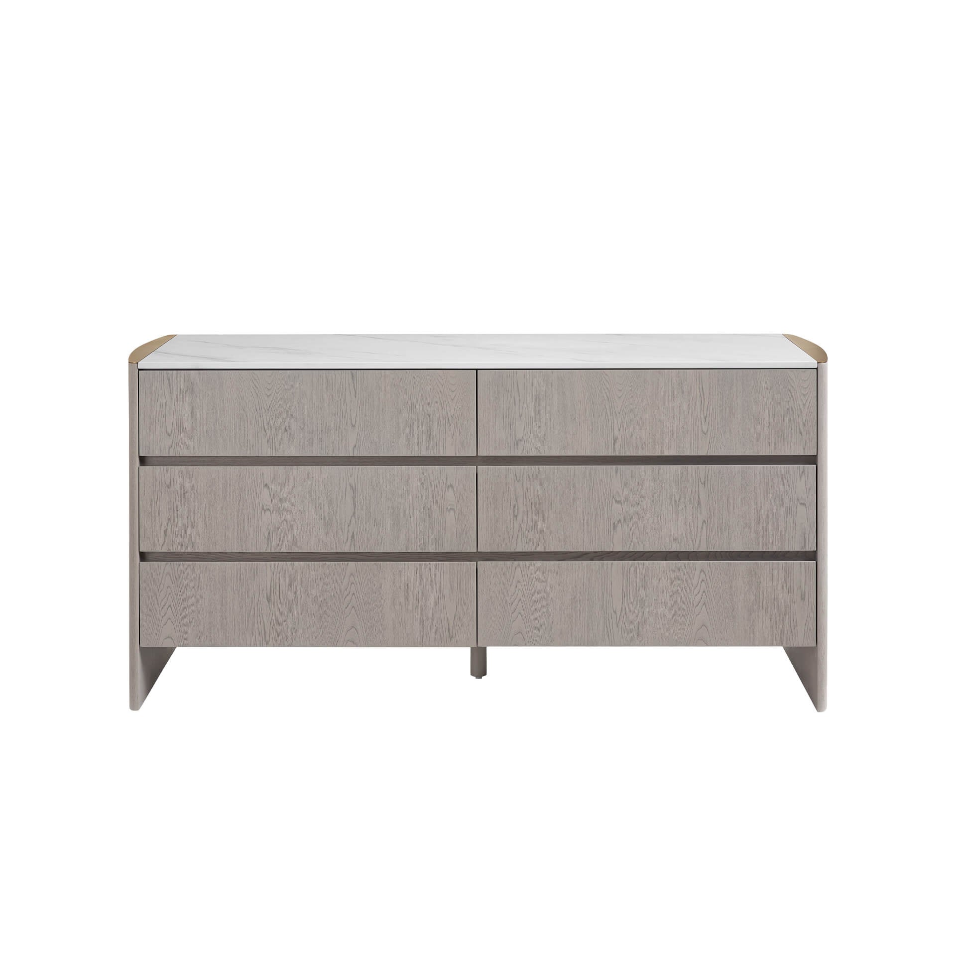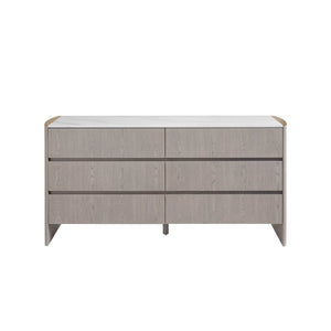 Mondello 6 Drawer Dressing Chest in Washed Oak combines sleek style with exceptional durability. Crafted from elm veneer, it features a scratch-resistant, stainproof, waterproof and antibacterial sintered stone top, framed with brushed stainless steel edging for a luxurious finish. With six spacious drawers and an easy-to-clean surface, it's the perfect blend of elegance and everyday functionality for contemporary bedrooms.