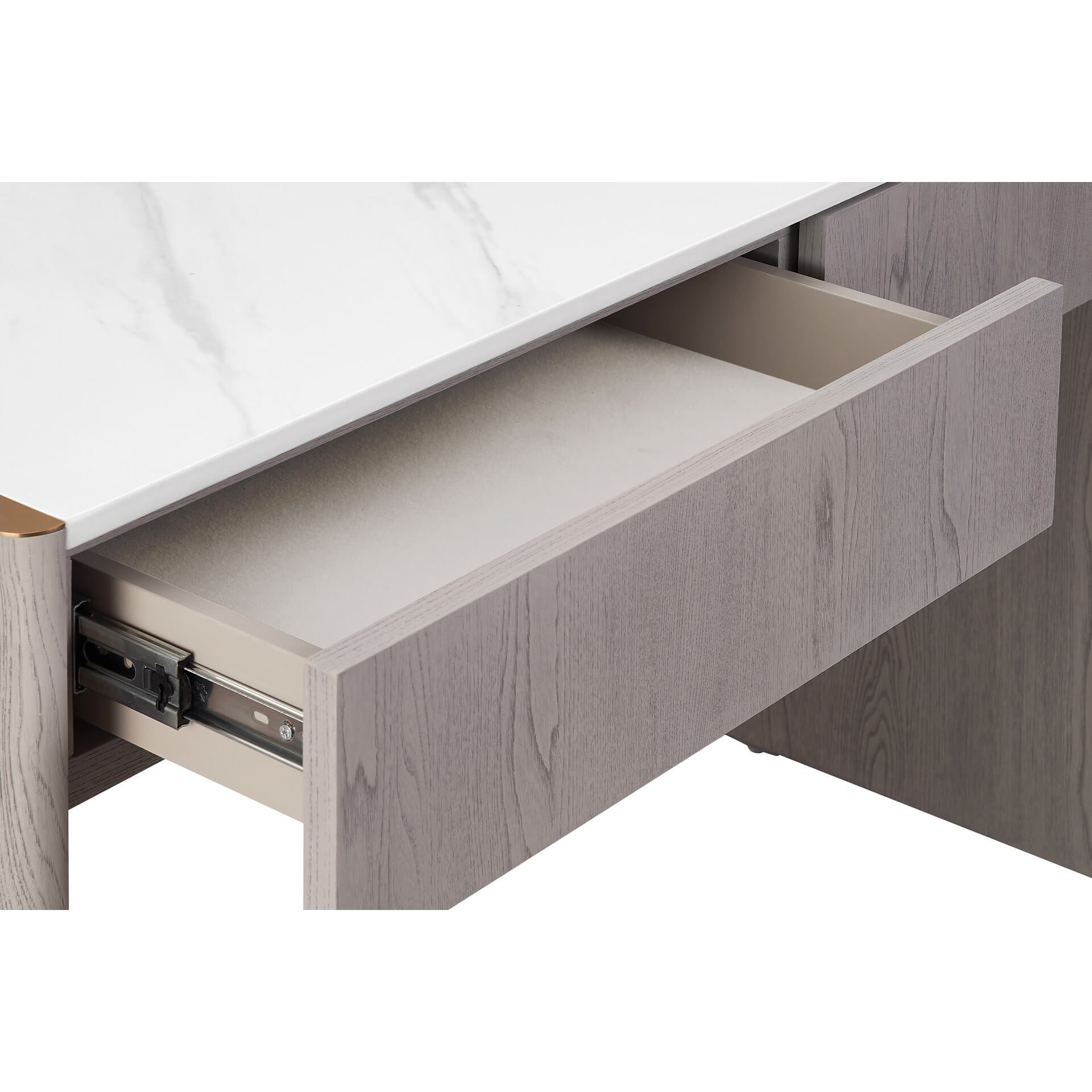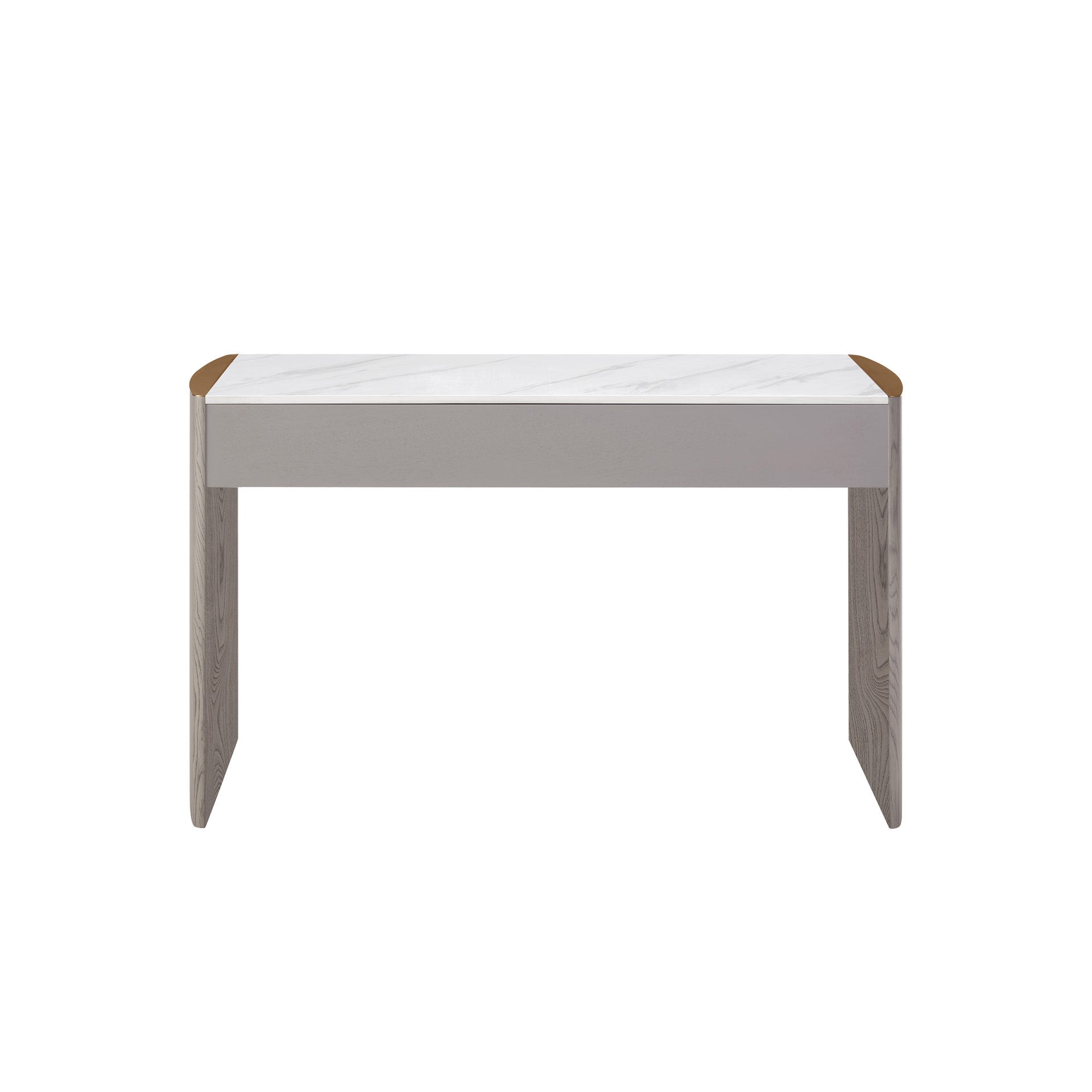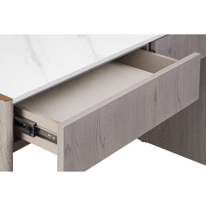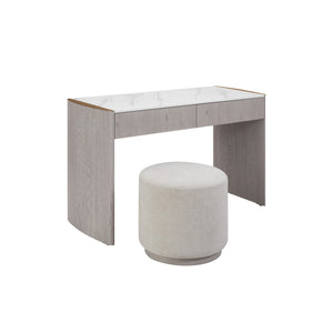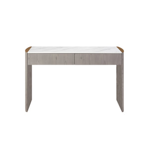 Mondello 2 Drawer Dressing Table in Washed Oak brings sophisticated style and practicality to your bedroom space. Crafted with a durable elm veneer, it features a waterproof, scratch-resistant, stainproof, and antibacterial sintered stone top, edged with brushed stainless steel for a sleek finish. With two spacious drawers and easy-to-clean surfaces, it's the perfect blend of modern luxury and everyday function.