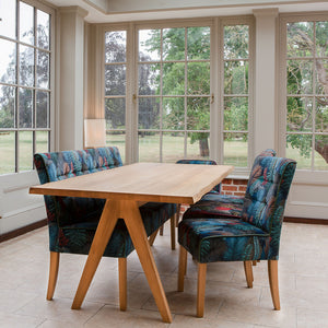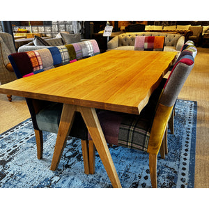 Designed with live edge detailing along the sides and A-frame wooden legs, the Morgan has a striking yet versatile look, perfect for country-inspired or contemporary homes alike. At an impressive 200cm in length, it provides generous dining space, comfortably seating family and friends for everyday meals or special gatherings.