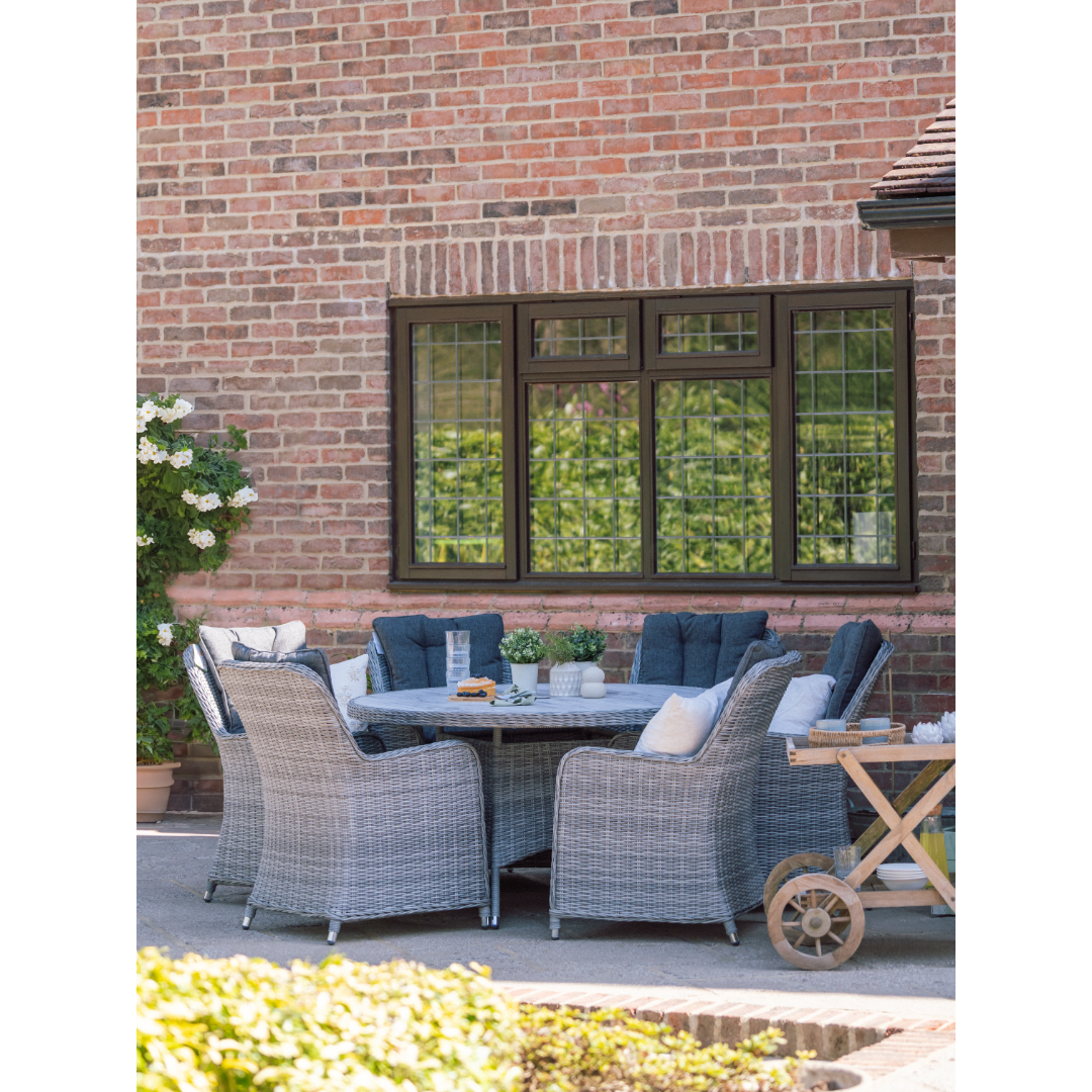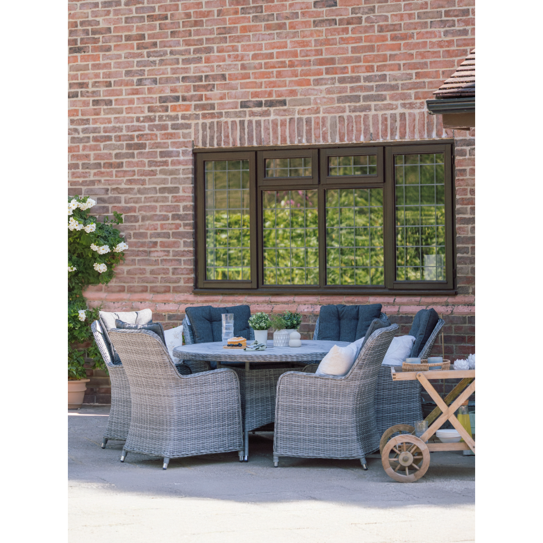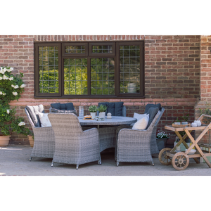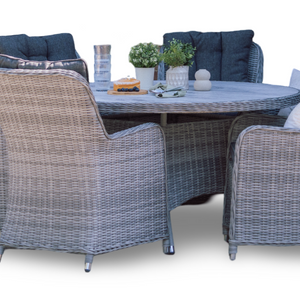 The Muckross 6 Seater Round Dining Set in Grey offers the perfect blend of style, comfort, and generous outdoor dining space. Designed with a spacious round table and seating for six, it creates a welcoming setting for family meals, summer gatherings, and relaxed outdoor entertaining. The soft grey finish brings a modern, neutral look that pairs beautifully with any garden or patio décor. Built from durable, easy‑care materials, this set is made to handle everyday outdoor living while maintaining its timeless appeal. Whether hosting friends or enjoying quiet evenings outside, the Muckross 6 Seater Set brings effortless elegance to any outdoor space.