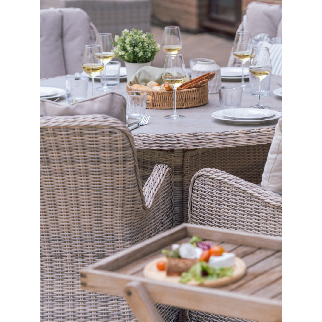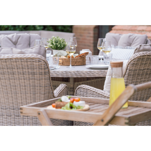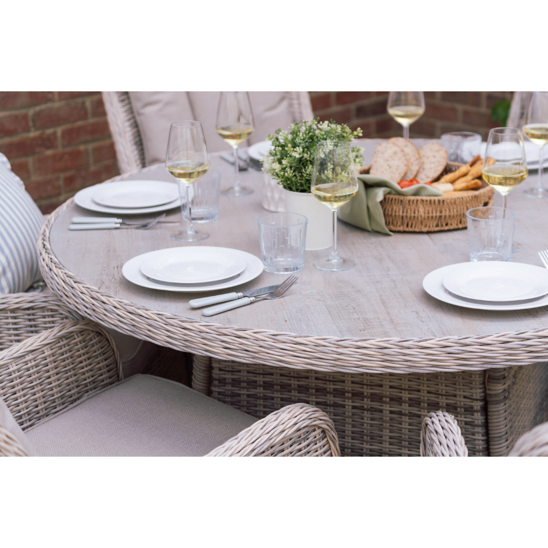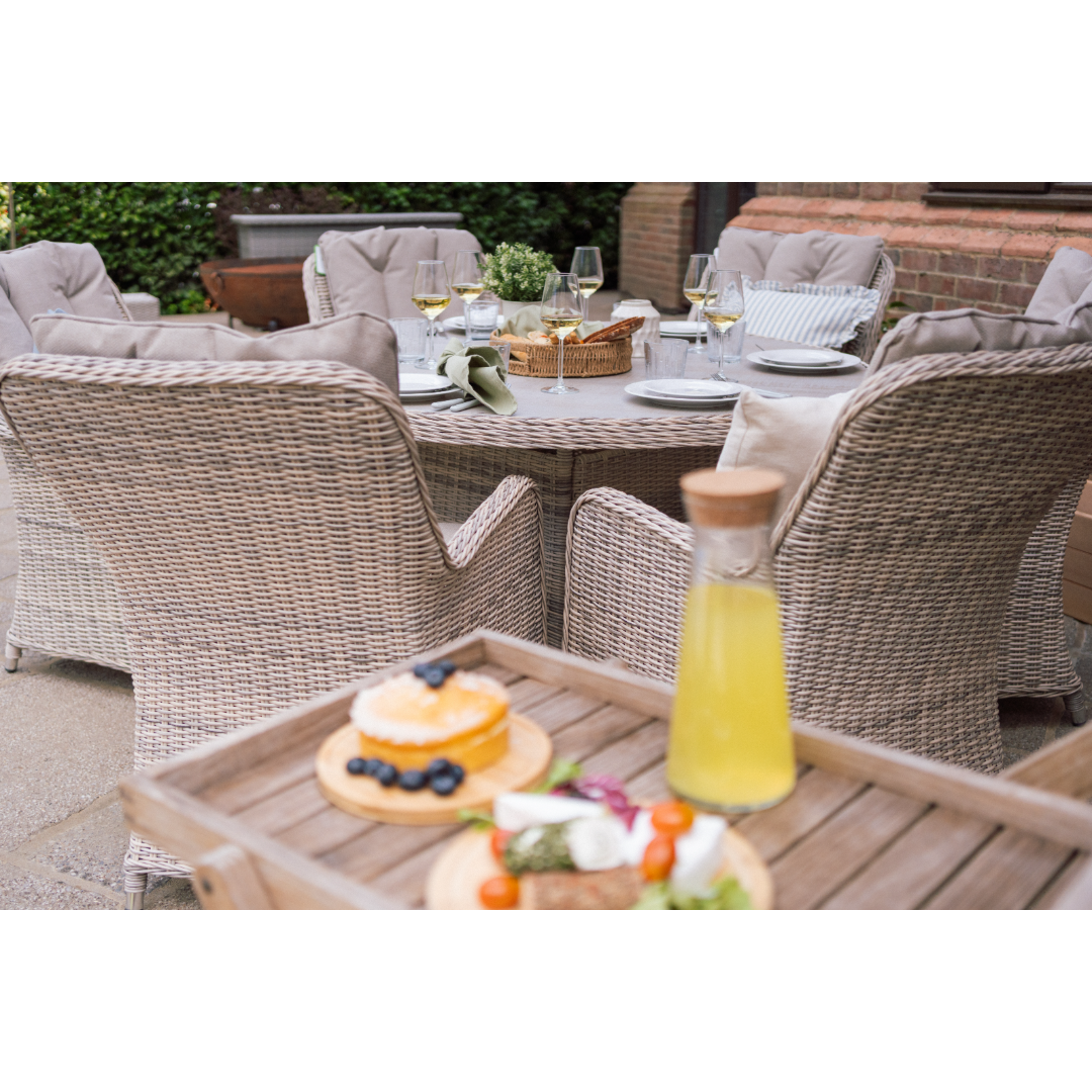 The Muckross 6 Seater Round Dining Set in Natural offers the perfect blend of style, comfort, and generous outdoor dining space. Designed with a spacious round table and seating for six, it creates a welcoming setting for family meals, summer gatherings, and relaxed outdoor entertaining. The natural finish brings a modern, neutral look that pairs beautifully with any garden or patio décor. Built from durable, easy‑care materials, this set is made to handle everyday outdoor living while maintaining its timeless appeal. Whether hosting friends or enjoying quiet evenings outside, the Muckross 6 Seater Set brings effortless elegance to any outdoor space.