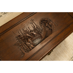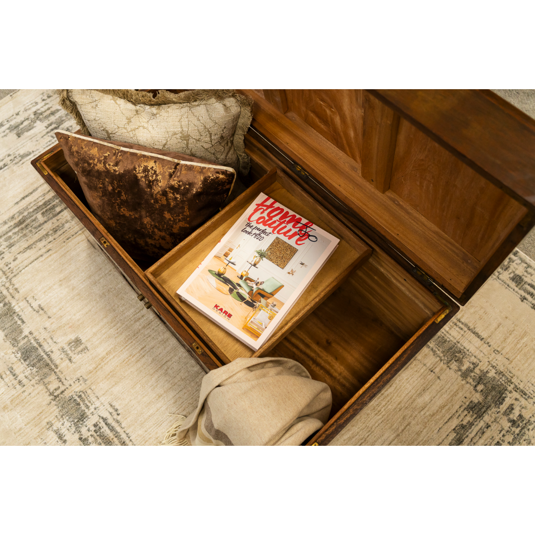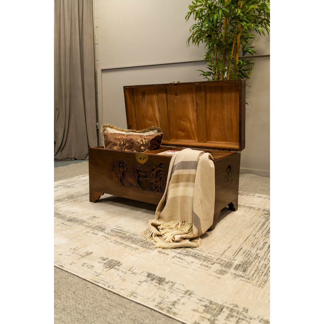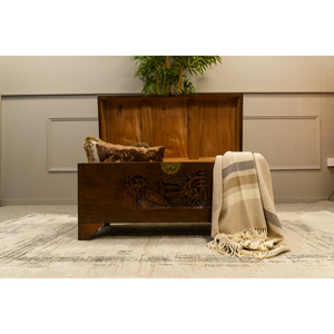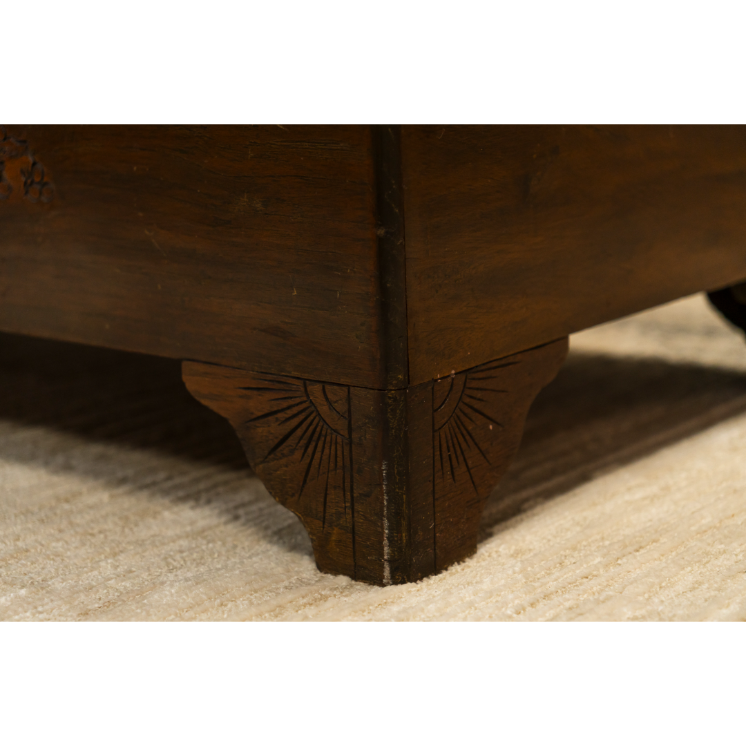 Oriental Camphon Wood Trunk hinged lid with carved panel