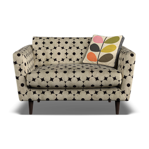 Experience the epitome of Scandinavian elegance with our Orla Kiely Dorsey Snuggler Inspired by timeless design, it seamlessly blends fluid curves and precise lines to create a plush and sophisticated seating solution. The Dorsey sofa's inviting, curved silhouette is tailor-made for cozy living spaces, embracing a Nordic aesthetic. Sink into luxurious comfort with feather-topper seat cushions, making every moment a delight. Upgrade your home with the Dorsey Snuggler today!