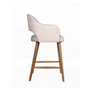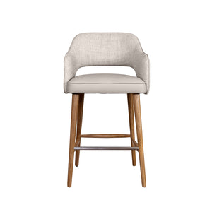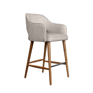 The Porta Stool combines contemporary design with premium comfort, making it a stylish and functional addition to any kitchen island or bar area. Featuring a curved upholstered backrest, a plush cushioned seat, and solid wooden legs with a sleek metal footrest, this stool offers both support and sophistication. The neutral tones and textured fabric detailing enhance its elegant aesthetic, ensuring it blends seamlessly with modern, rustic, or Scandinavian interiors.