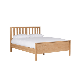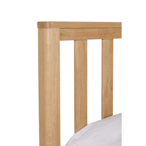 Elevate your bedroom with the Renata 4ft6 Bed in Oak. Crafted from solid oak and oak veneer, it offers enduring beauty and durability. Smooth rounded edges and flush sides exude sleek, contemporary charm, perfect for modern aesthetics. This stylish and durable bed effortlessly enhances any bedroom décor with its timeless appeal and robust construction.