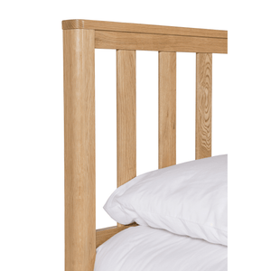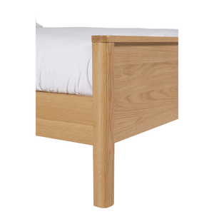 Elevate your bedroom with the Renata 5ft Bed in Oak. Crafted from solid oak and oak veneer, it offers enduring beauty and durability. Smooth rounded edges and flush sides exude sleek, contemporary charm, perfect for modern aesthetics. This stylish and durable bed effortlessly enhances any bedroom décor with its timeless appeal and robust construction.