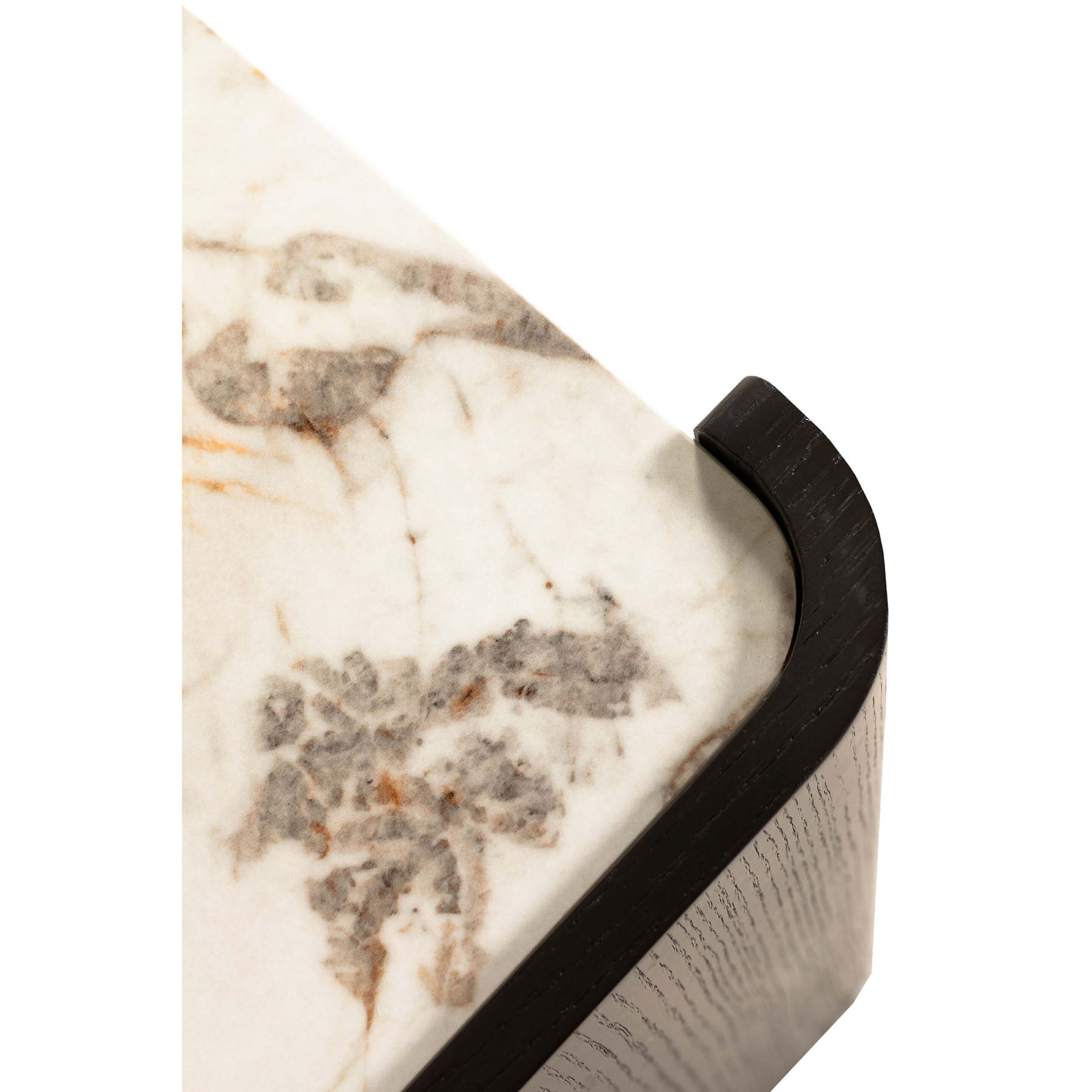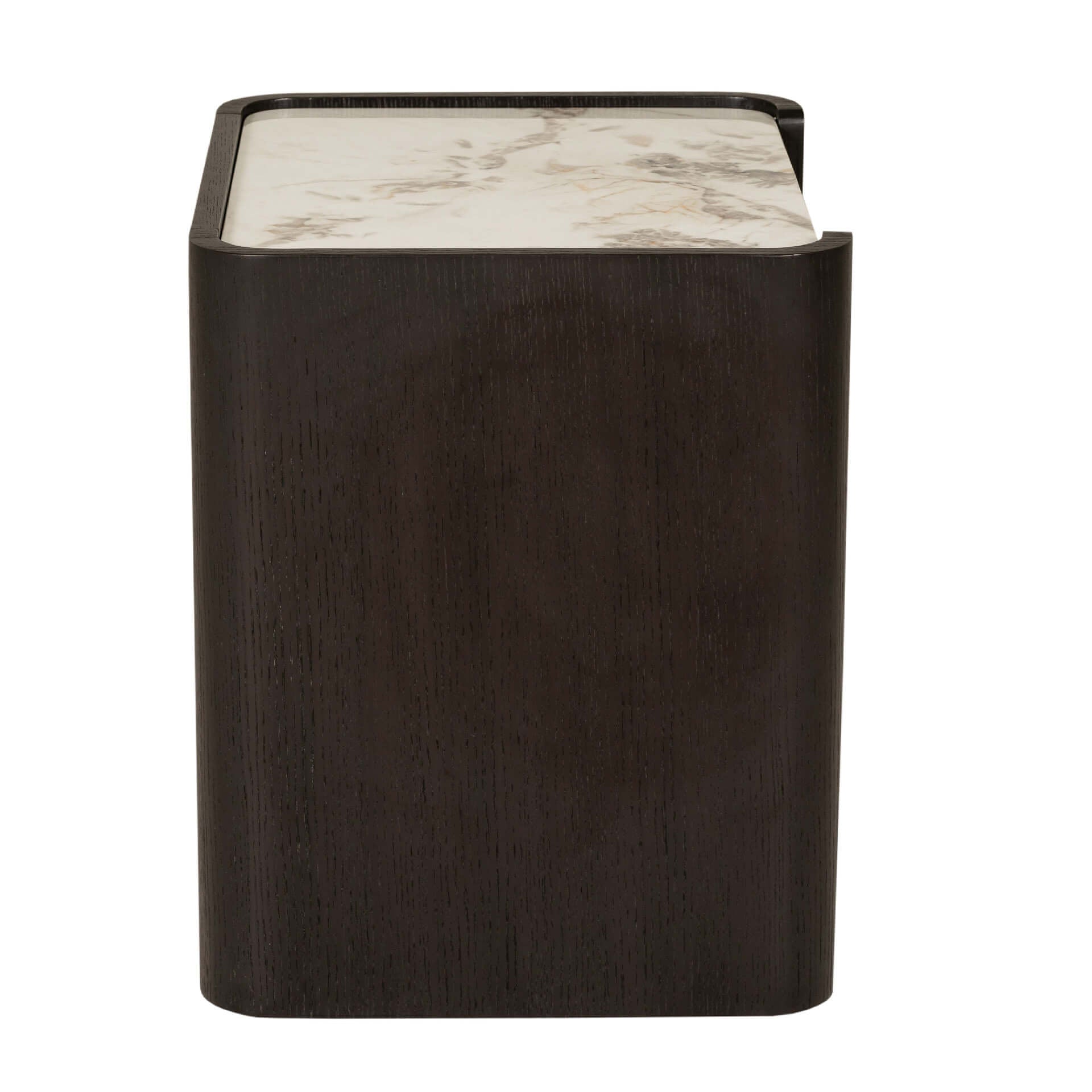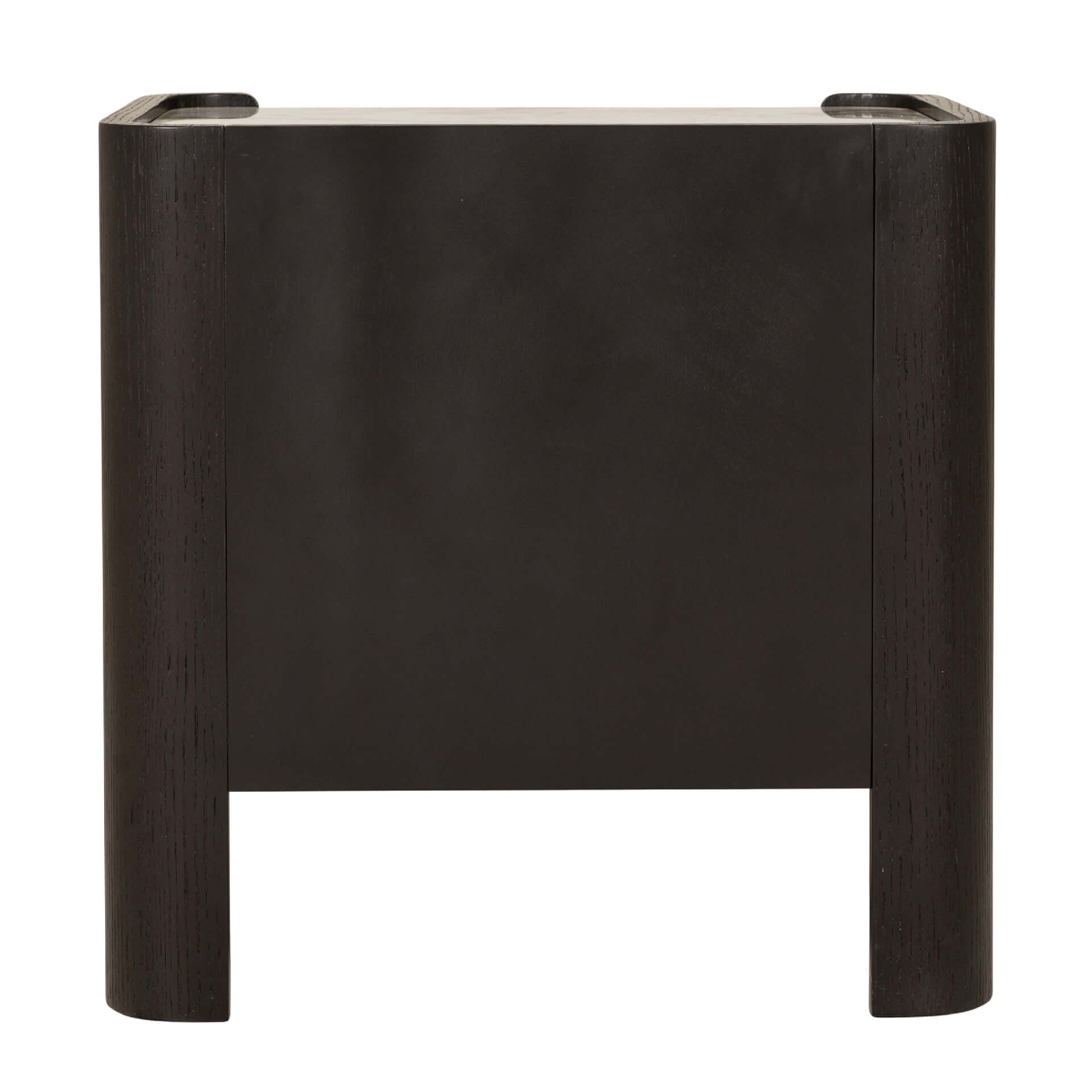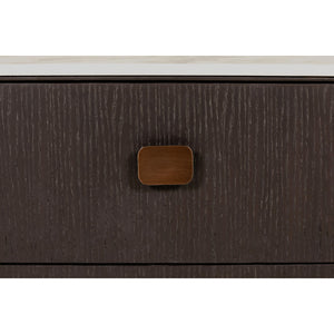Introducing the Rhodes 2 Drawer Bedside Locker in Ebony—a pinnacle of luxury and sophistication for your bedroom. Expertly crafted with meticulous detail, it features a sleek ebony finish and copper metal handles, exuding contemporary elegance. The sintered stone top is both stain and scratch-resistant, ensuring durability and easy maintenance. Enjoy stylish storage with this high-end, durable bedside table.