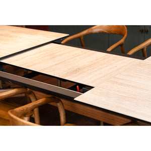 Bold, modern, and built to last – the Sasso dining table makes a strong statement in any space. With a premium ceramic top and smooth extension mechanism, it combines durability with effortless style.