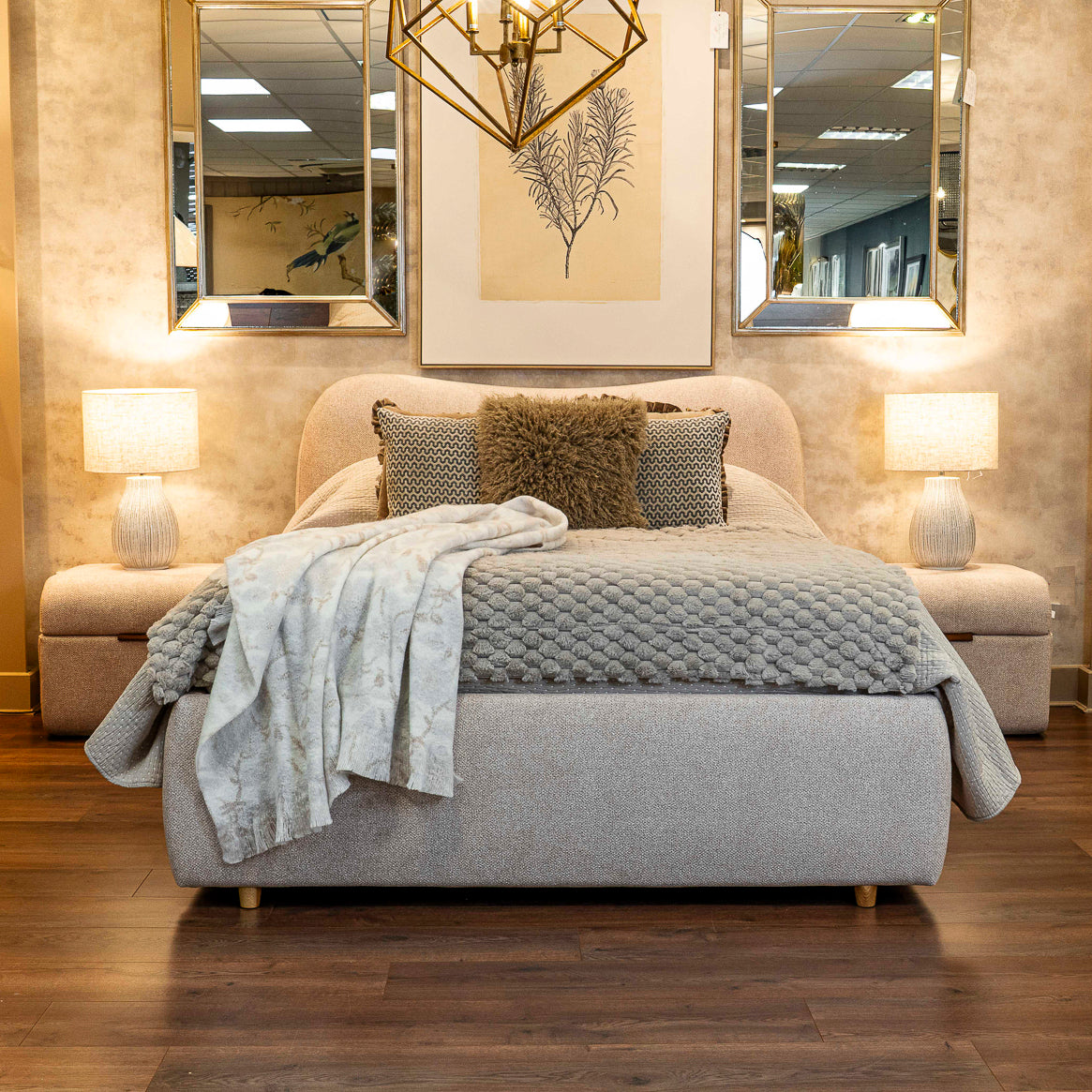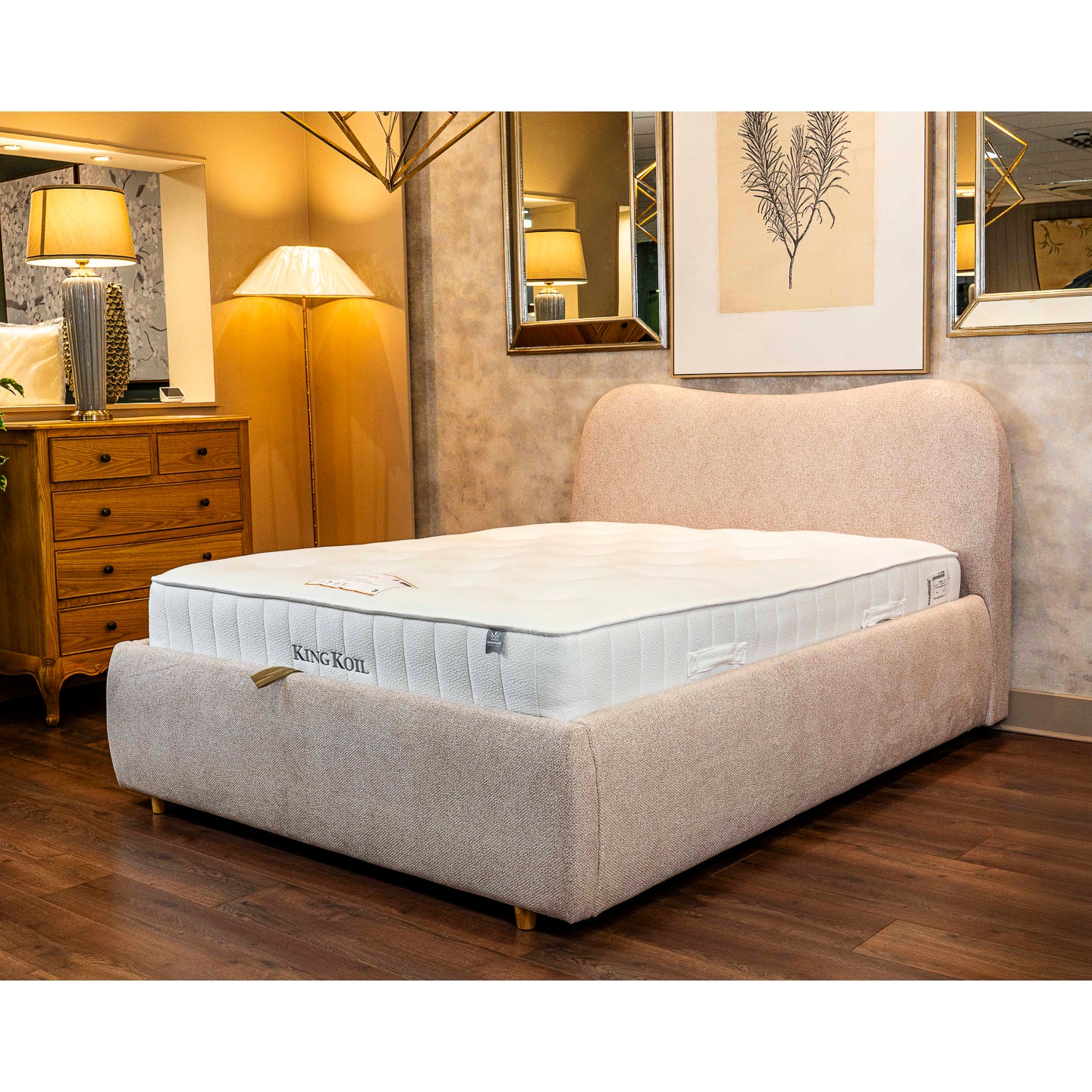 Bring elegance and practicality into your bedroom with the Serrno 6ft Bed Frame. Upholstered in a soft natural fabric, its gently curved headboard adds a touch of charm and sophistication to any interior.