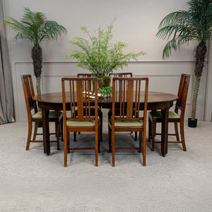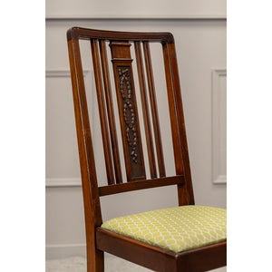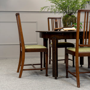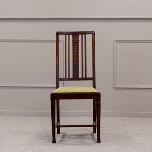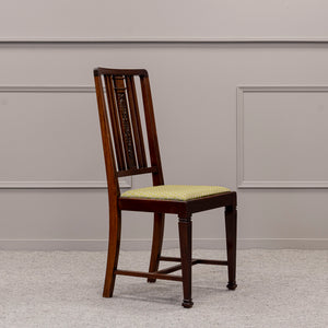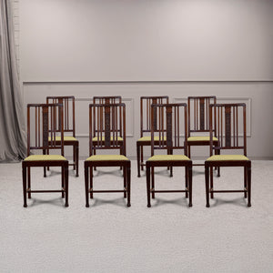 A stunning set of 8 antique mahogany dining chairs, exuding timeless elegance and craftsmanship. Featuring beautifully carved details and a rich mahogany patina, these chairs reflect classic sophistication. The upholstered drop-in seats provide both comfort and convenience, allowing for easy maintenance or reupholstering to suit your décor. A rare find, this set is perfect for collectors, period interiors, or anyone seeking to add historic charm to their dining space.