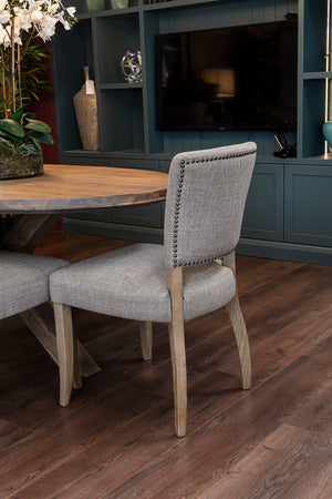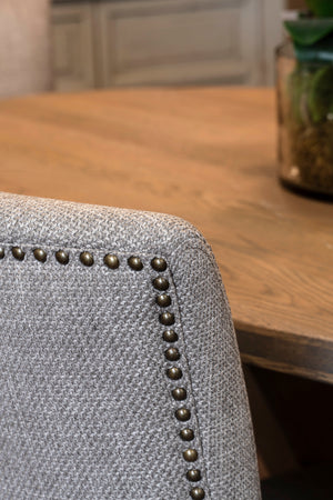 Elevate your dining space with the Shaw Dining Chair in taupe, a perfect blend of comfort, elegance, and timeless craftsmanship. Upholstered in rich, soft fabric, this chair features a gently padded seat and a studded back for a refined finish. The solid oak legs bring warmth and durability, beautifully complementing the taupe tone for a sophisticated look.