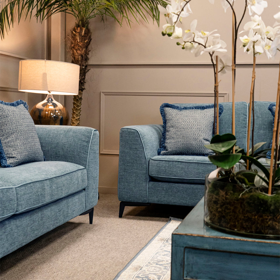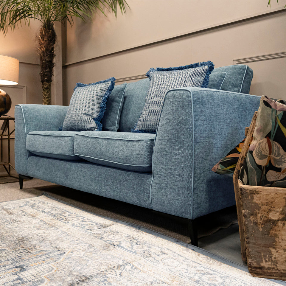 Upgrade your home with the Tara Aqua 2 Seater Sofa—where chic design meets cozy relaxation.