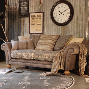 The Montana Midi Sofa blends luxurious leather and fabric for a rich, unique look. Its large scroll arms and artisanal scatter cushions bring a refined, laid-back charm, while the feather seat cushions and sprung seats offer exceptional comfort for lounging or relaxing.