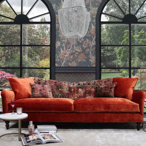 With luxurious velvets and intricate patterns, this sofa is a standout piece that will enhance both traditional and contemporary settings.