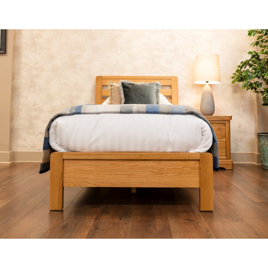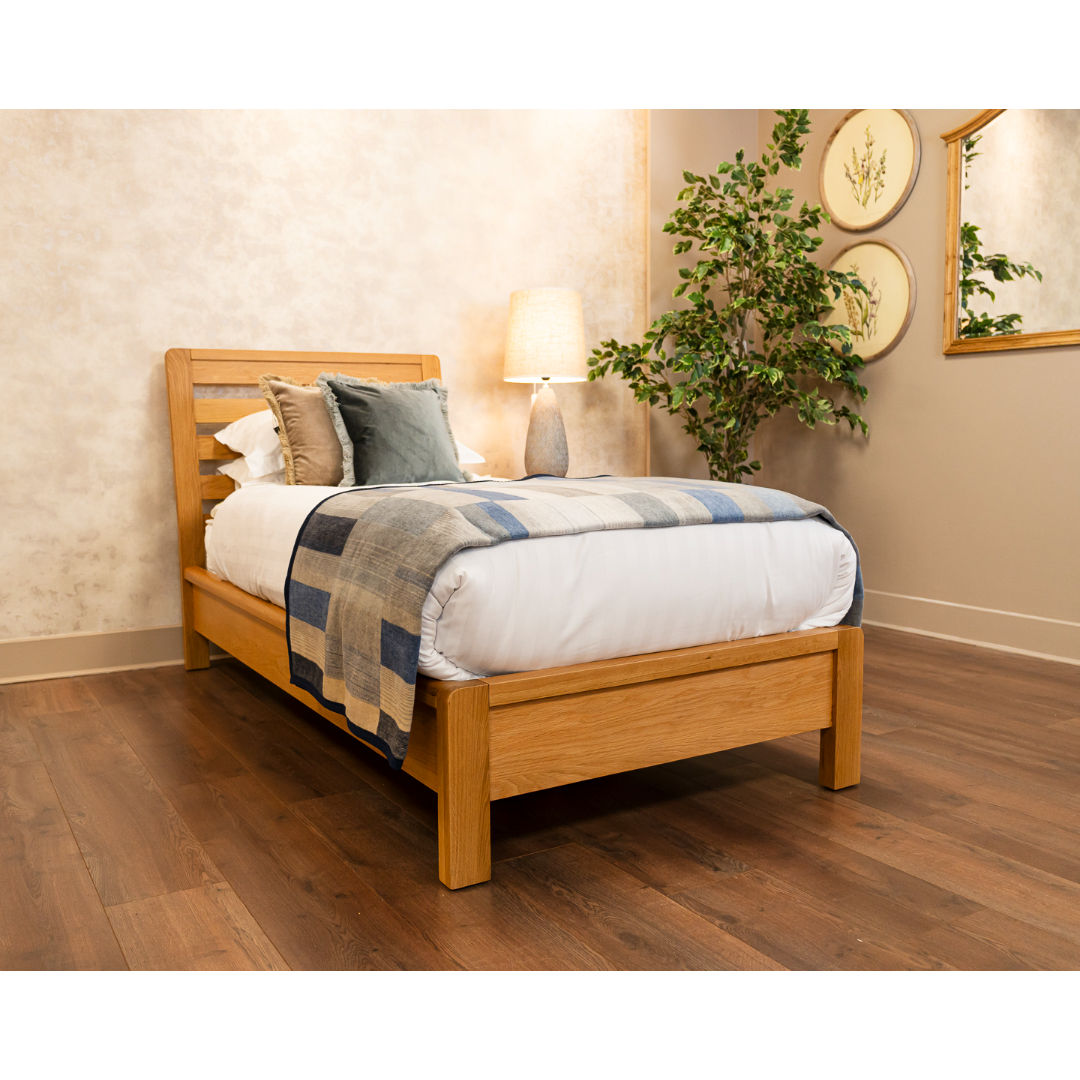 Discover the charm of the Victoria Single Bed Frame in Low-End Oak, a harmonious blend of affordability and enduring style. This bed frame is designed to provide both durability and timeless elegance, making it an ideal choice for budget-conscious homeowners without sacrificing quality or aesthetics.