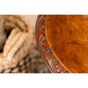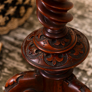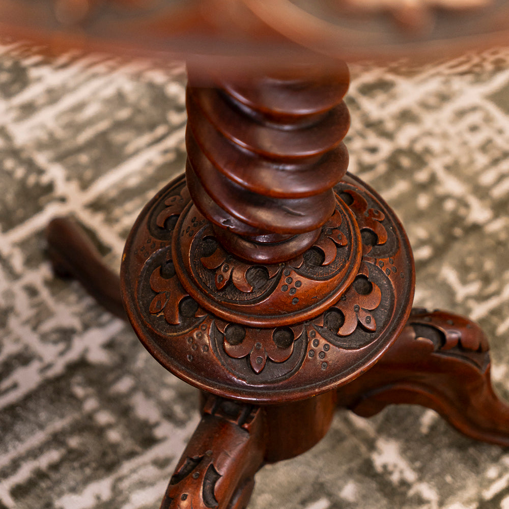 Victorian Highly Carved Round Occasional Table with barley twist on tripod base