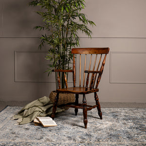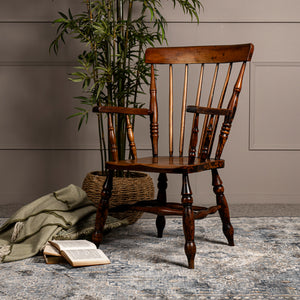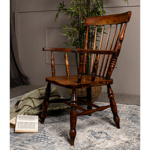 Vintage Oak and Ash Windsor Chair curved top rail, cylindrical splats, sloped seat