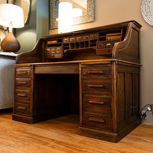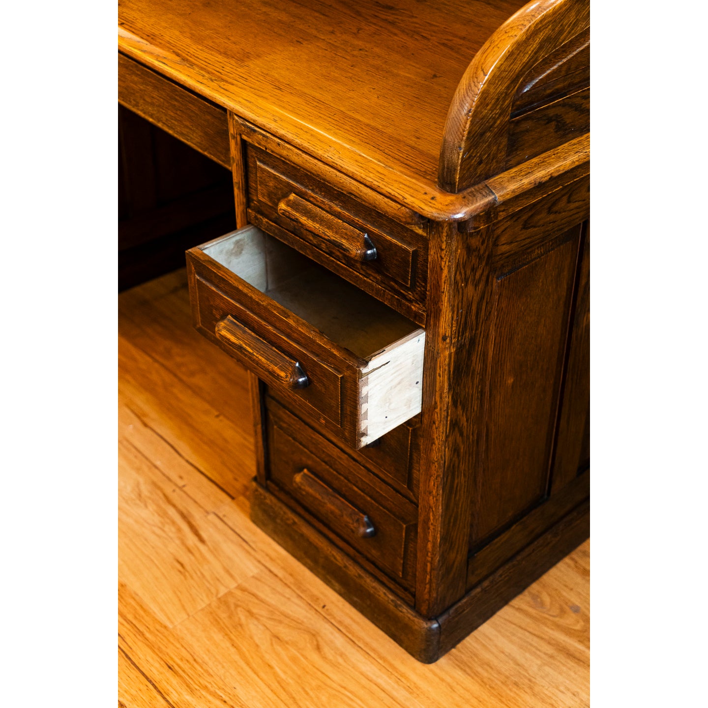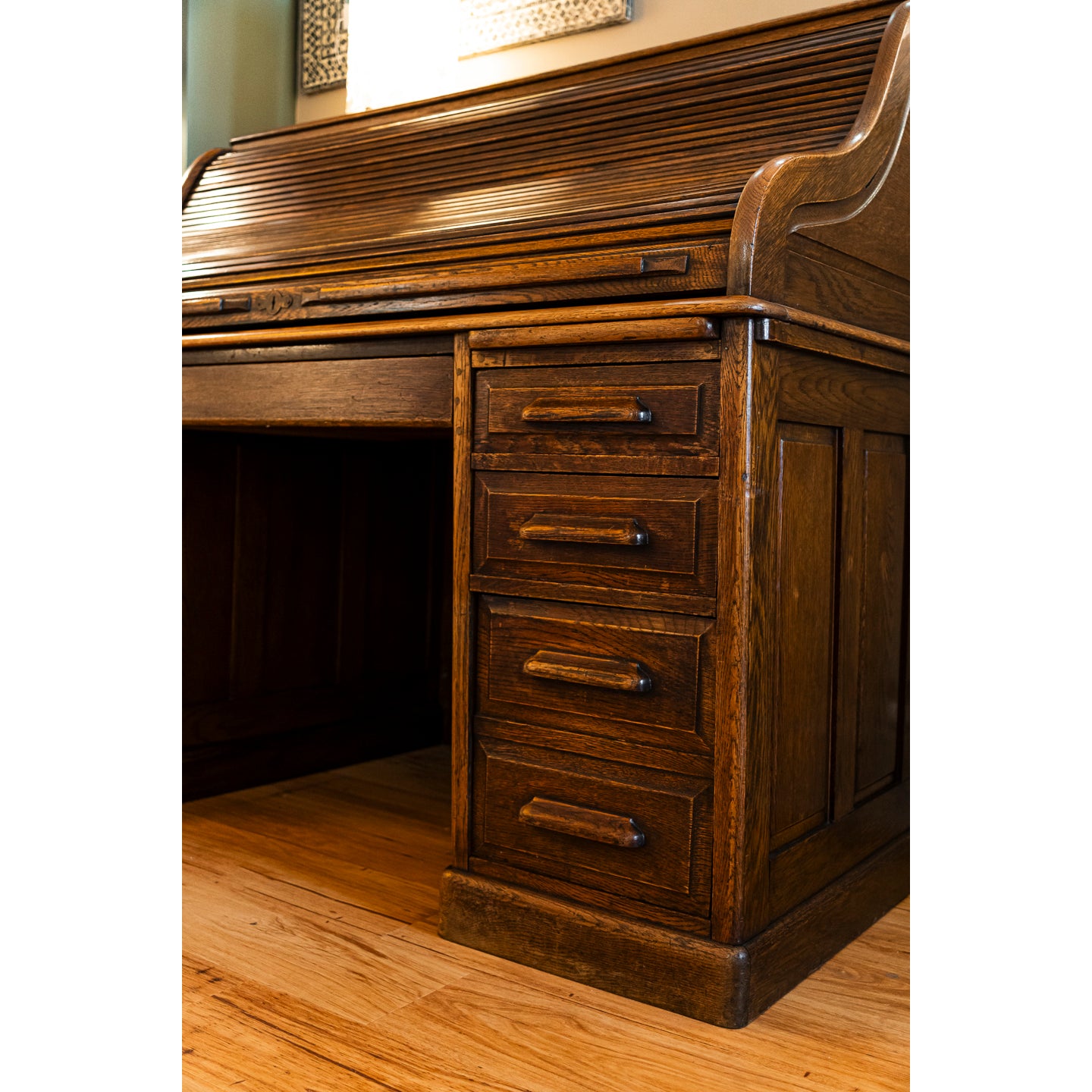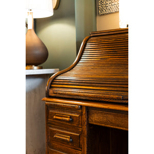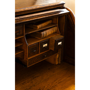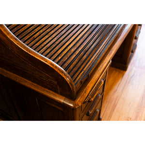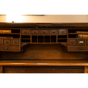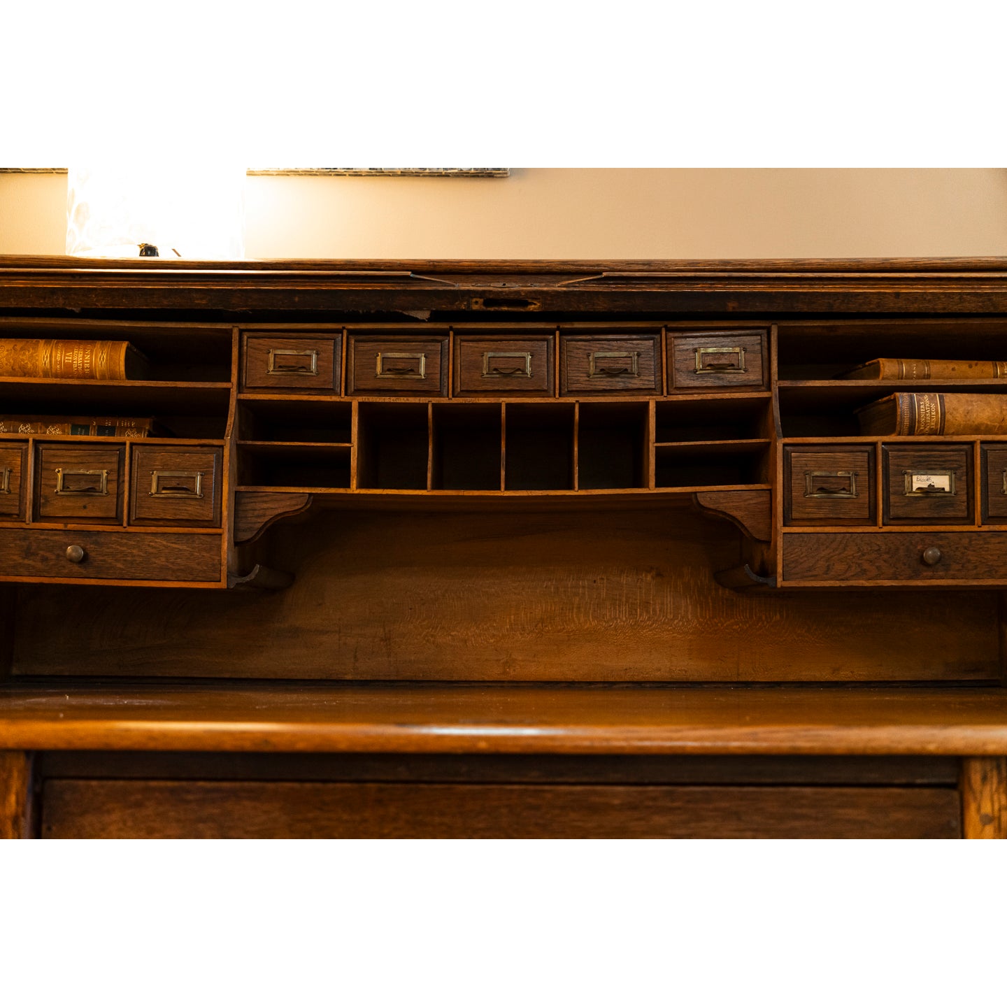 A Vintage Oak Roll Top Desk Tambour shutters, pigeon holes and drawers