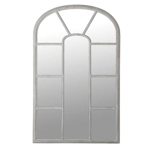 This Vintage Windowpane Wall Mirror adds a touch of elegance and charm to any space. The arched shape and pale grey finish give it a timeless and classic look, while the large size makes it a statement piece. The mirror is perfect for reflecting natural light and creating the illusion of more space in a room. Whether used in a living room, bedroom, or hallway, this mirror is sure to become a beloved focal point in your home.